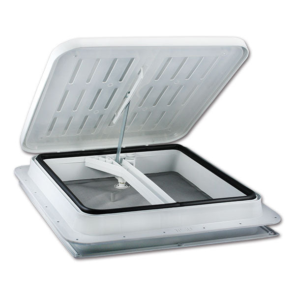 TF40 Dachfenster 40 x 40 cm, robust und preiswert, mit Kompassöffnung. Handkurbelbedienung und innenliegendes Moskitonetz.
