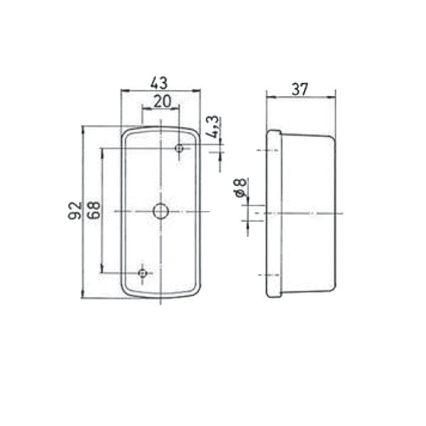 Doppelseitige Umrissleuchte mit Glühlampe.