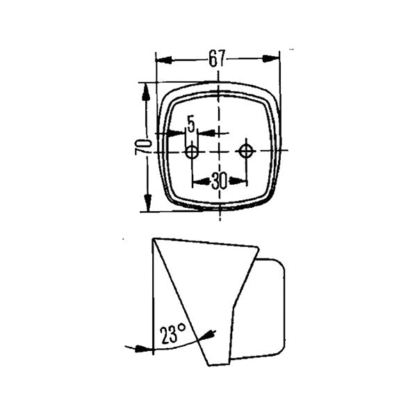 Weiße Umrissleuchte 23° geneigt mit Glühlampe.