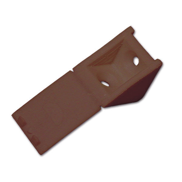 Blisterpackung mit 10 Stück für braune 2-Loch-Eckmöbelbeschläge mit Klappdeckel.