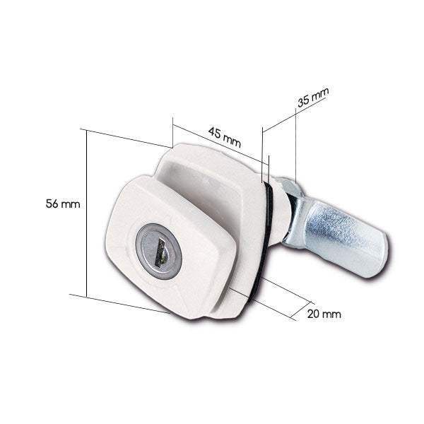 Weißes rechteckiges Schloss. Lochabstand 40 mm. Mit Blister. Zadi