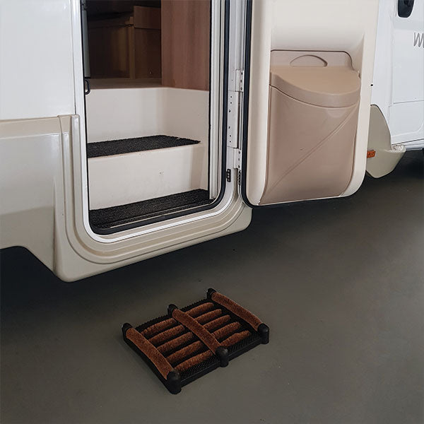 Cocco Brush Mini-Fußmatte aus 100 % natürlicher Kokosfaser mit rutschfester Vinylunterseite.