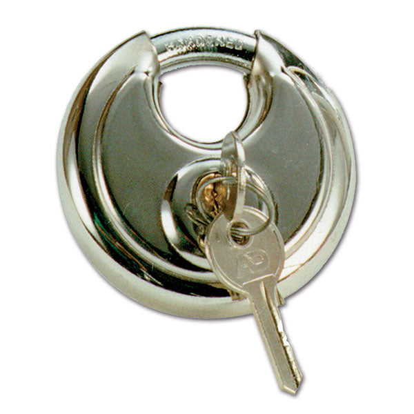 Lucchetto antifurto con doppie chiavi, compatibile con gli antifurti universali.