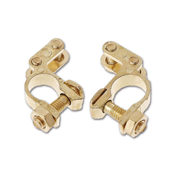 Due connettori a morsetto in ottone di alta qualità per batteria auto.