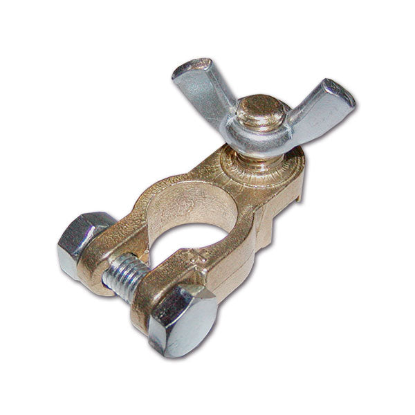 Morsetto a farfalla per polo positivo batteria, attacco per capicorda con foro da 8 mm.