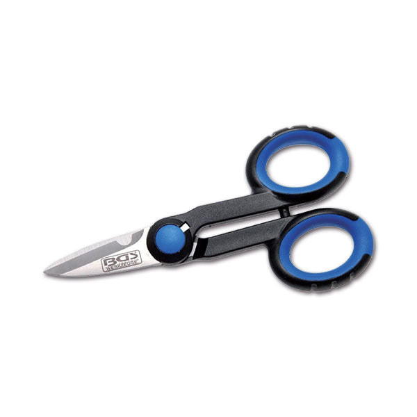 Forbici professionali con lame seghettate in acciaio inox ad alta resistenza. Impugnatura ergonomica e presa morbida. Con spellafili.