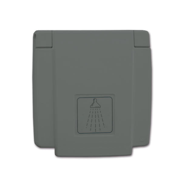 Complete grey external socket with hand shower and mixer for hot and cold water.