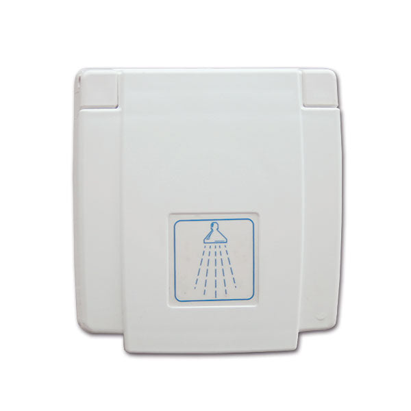 Complete white external socket with hand shower and mixer for hot and cold water.