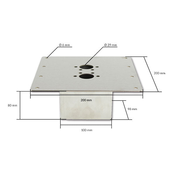 | Parte superiore | 200 x 200 x 2 mm |