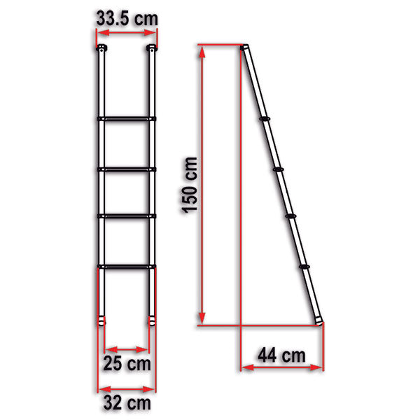 Gradini inclinati di 15°, completa di comodi agganci e attacchi per fissaggio alla cuccetta.
