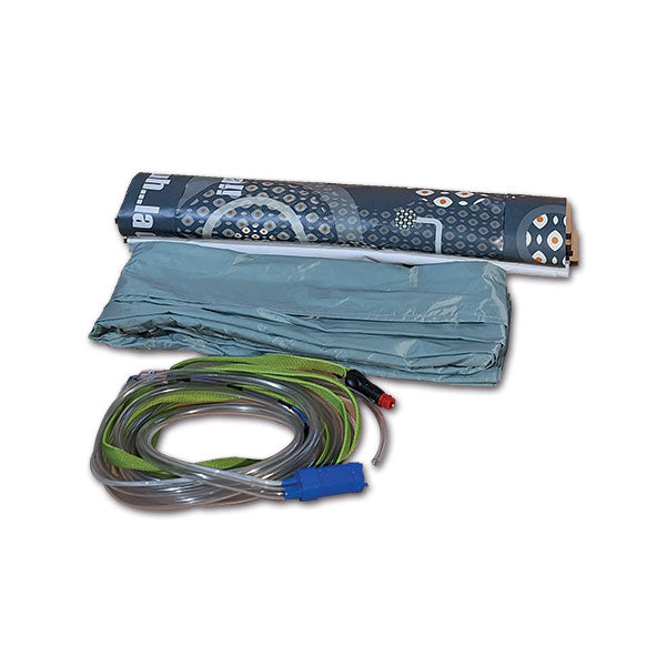 • 1 Box in tessuto impermeabile e sistema di scarico, tutto richiudibile nella sua sacca. (LxPxH mm) 120 x 120 x 700.