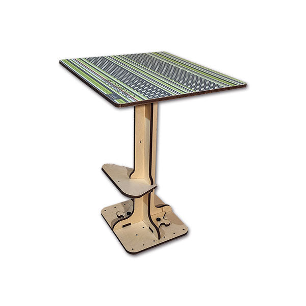Comodo tavolo che diventa sgabello con un semplice gesto, svitando il pomello sottostante e rimuovendo il piano d’appoggio e per convertirlo da tavolo in un comodo sgabello con tanto di poggiapiedi.