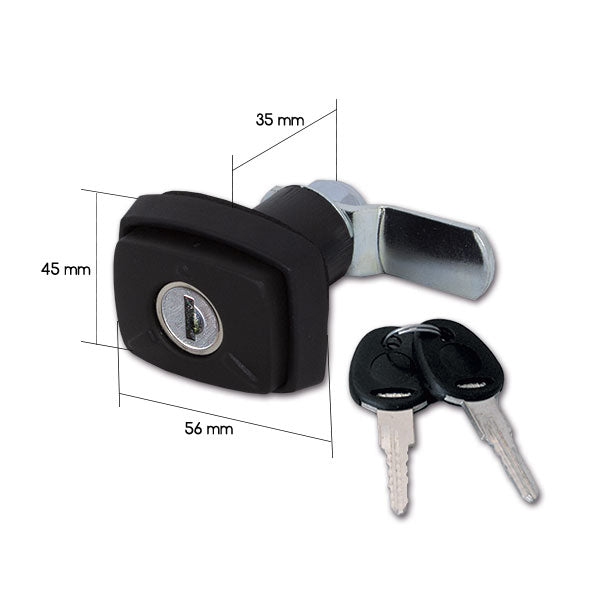 Serratura Push per portellone rettangolare nera. Interasse fori 40 mm. Zadi.
