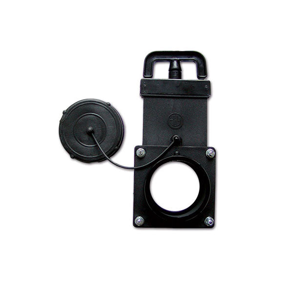 3" drain valve with female threaded flange and bayonet flange with plug.