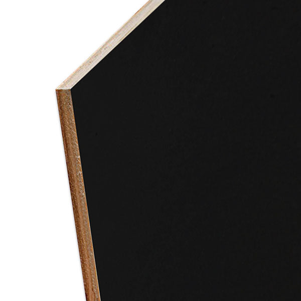 Compensato di pioppo nobilitato su ambo i lati laminati in tinta unita nero.