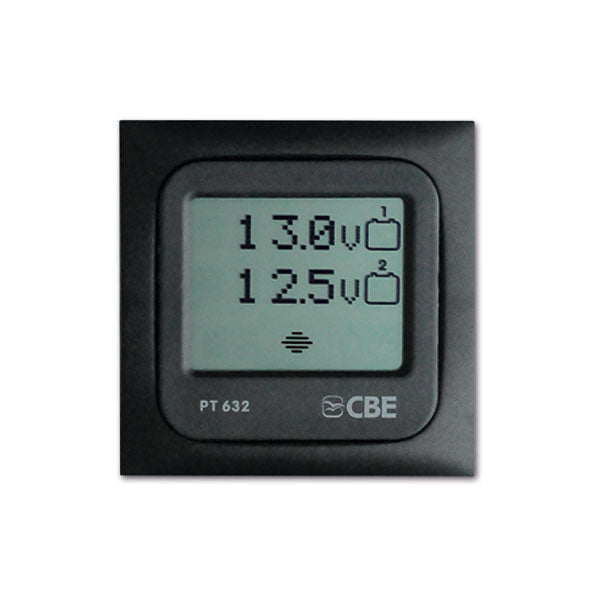 Pannello test digitale touch modello PT632/G per il controllo della tesione di 2 batterie a 12V.