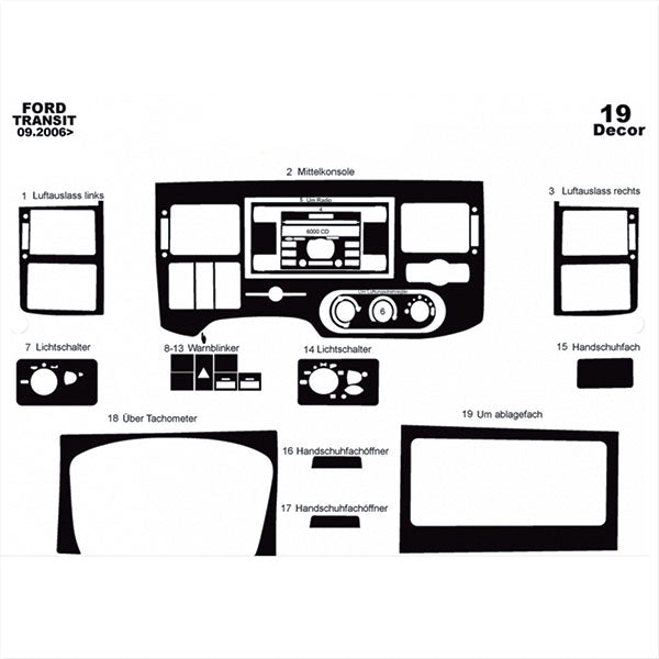 Mascherine autoadesive per cruscotto specifico Transit 09/'06-08/'10.