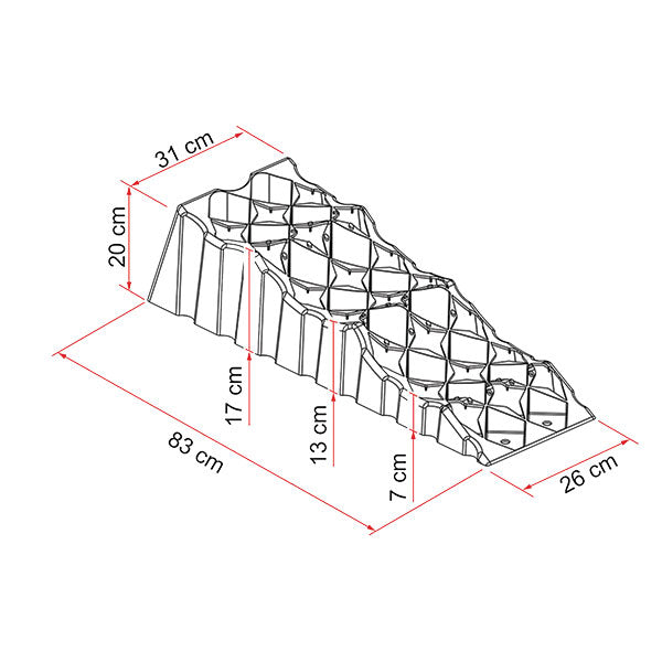 Il cuneo con tre culle di livellamento posizionate a 7, 13 e 17 cm.