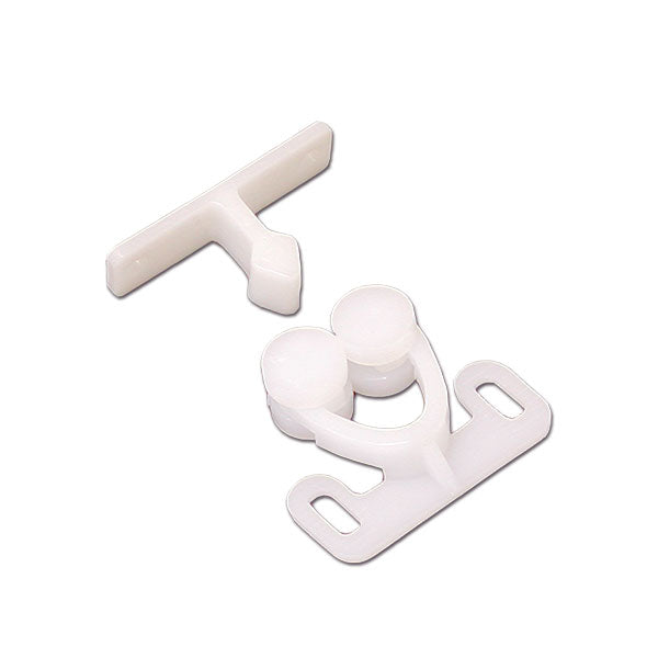Ferma antina a doppia rotella bianca, costruita in nylon, con interasse di 28,5 mm