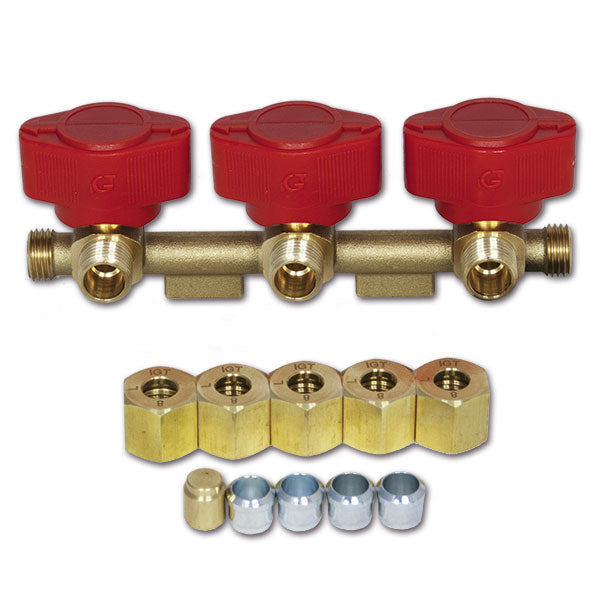 Con 5 dadi e ogive per il collegamento a tubi in rame Ø 8 mm.