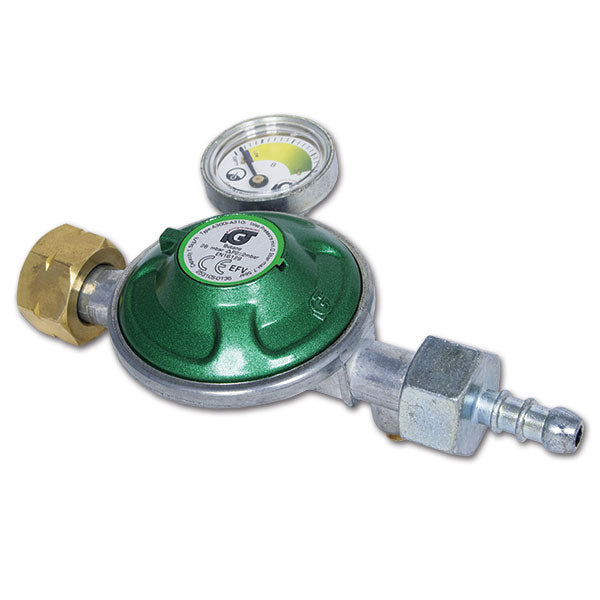 Regolatore di pressione 28 mBar con attacco passo Italia e uscita portagomma.