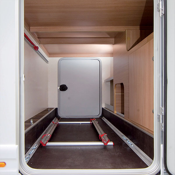 Garage Pack è un sistema modulare semplice e flessibile per riporre le bici nel gavone del camper.