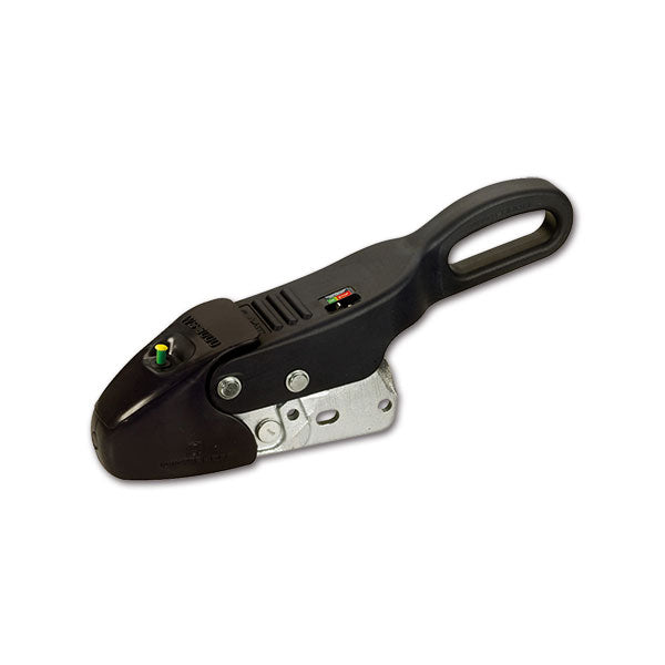 Dotato di indicatore ottico del corretto aggancio, spia di consumo dei ferodi e finitura in gomma morbida sulla parte anteriore per prevenire danni da eventuali urti.