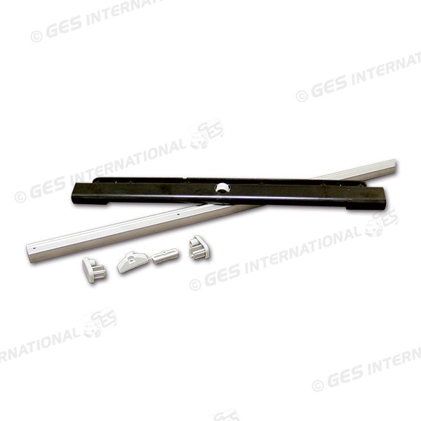 Guida tavolo, composta da un profilo in alluminio da fissare alla parete ed un corpo in plastica da fissare al tavolo. Lunghezza 950 mm.