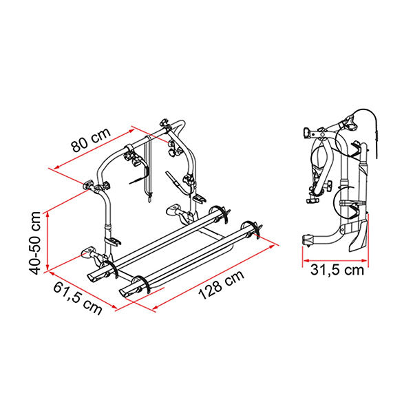 Carry-Bike PRO C L80 - Laika. Modello speciale, con interasse da 80 cm, disegnato per soddisfare le caratterisciche dei camper Laika, permettendone l’installazione in modo semplice e sicuro.