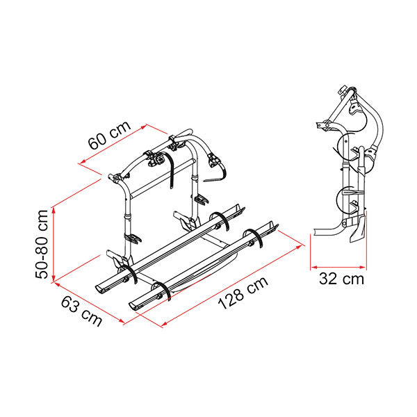 Carry Bike Pro M senza staffe. Nuova versione della gamma PRO che copre l'interasse di montaggio da 50 a 80 cm. Struttura telescopica regolabile.
