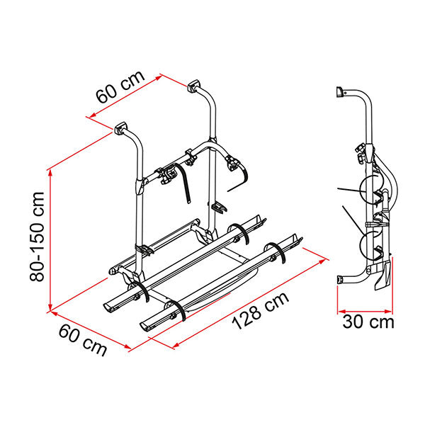 Carry Bike Pro con staffe. Versione allungata della serie PRO per una regolazione alta del montaggio della struttura superiore, con una maggiore stabilità.