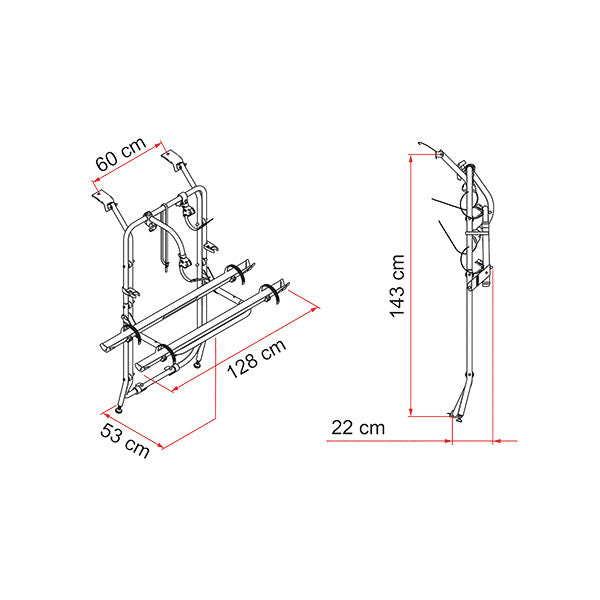 Carry-Bike adatto ai modelli Vivaro e Trafic con portellone unico. Consigliato l’utilizzo di barra portatarga con luci, disponibile come optional.