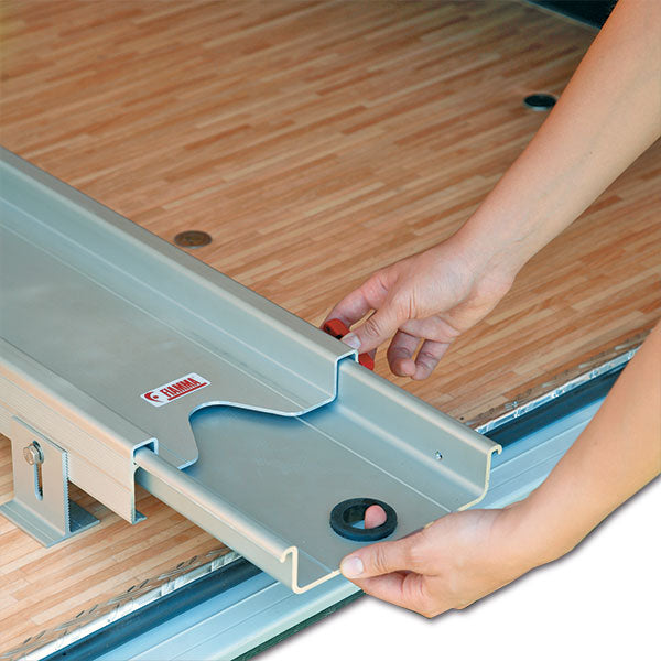 Carry-moto Pro per gavone, composto da due canaline telescopiche in alluminio da installare nel vano garage.