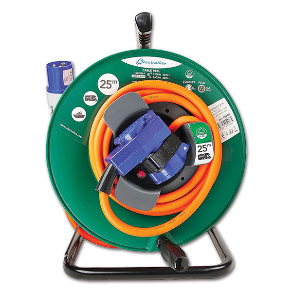 Completo di guidacavo in metallo per un riavvolgimento semplice, senza annodamenti o torsioni. Guaina in neoprene e isolamento IP44.