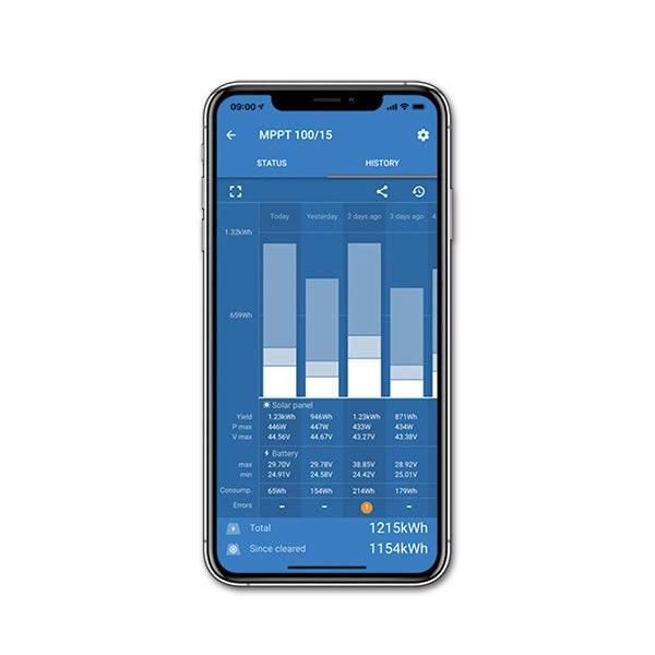 Il regolatore di carica MPPT Victron 75/15 di ultima generazione ottimizzano la carica massimizzando la resa del pannello, permettendo così di ottenere una carica completa il più rapidamente possibile.