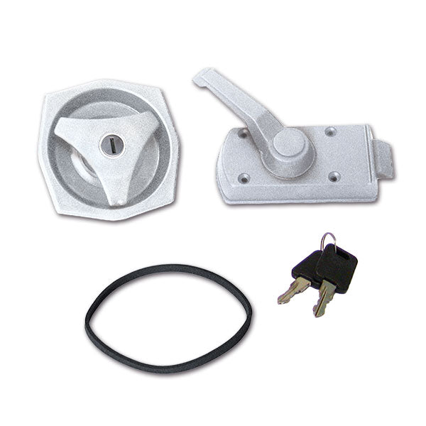 Serratura per porta cellula serie Europa, completa di chiave e cilindretto tradizionale con maniglia.