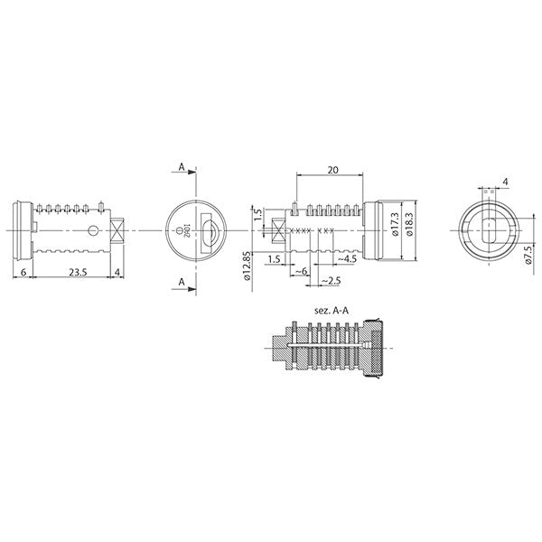 Cilindretto. Al momento dell'ordine, se necessario, specificare il numero desiderato, al contrario verrà effettuata. la consegna in base alla disponibilità a magazzino. Numeri disponibili da 9001 a 9051