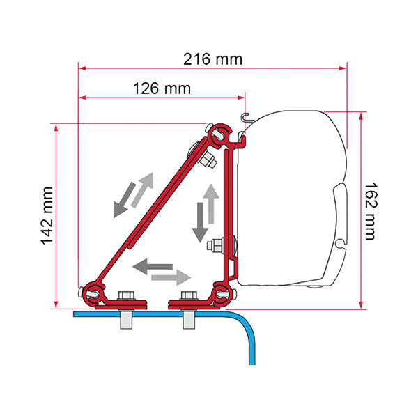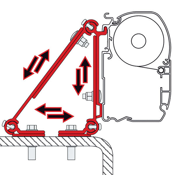 Comprende 1 staffa da 8 cm modulare adatta per compensare la curvatura del tetto del minivan.